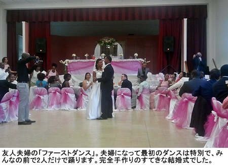ニューヨーク(NY)では、ダンスをする機会がとても多くあります。会社のパーティーで、友人の結婚式で、クリスマスパーティーで―。パーティーと名の付くものには大抵、ダンスが付きます。会場にはDJブースが用意され、来た人々は何時間もダンスを楽しむのです。「日本ではダンスはまずしないなぁ」と私が言うと、主人はとても驚いて「じゃあ、日本人はパーティーや結婚式で何をしているの?」と逆に質問されてしまいました。「歓談を楽しみ、食べて、挨拶して、会社のボスや友人のスピーチがあって、十分楽しいよ」と説明すると、「ふーん」と気のない返答...。 ニューヨーク(NY)では、ダンスをする機会がとても多くあります。会社のパーティーで、友人の結婚式で、クリスマスパーティーで―。パーティーと名の付くものには大抵、ダンスが付きます。会場にはDJブースが用意され、来た人々は何時間もダンスを楽しむのです。「日本ではダンスはまずしないなぁ」と私が言うと、主人はとても驚いて「じゃあ、日本人はパーティーや結婚式で何をしているの?」と逆に質問されてしまいました。「歓談を楽しみ、食べて、挨拶して、会社のボスや友人のスピーチがあって、十分楽しいよ」と説明すると、「ふーん」と気のない返答...。