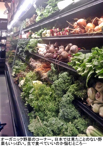 今月号のティーン向けファッション誌に「(米歌手の)テイラー・スウィフトは、エンドウ豆のパウダーをグリーンスムージーに入れてタンパク質を補給している」と、写真付きで紹介されていました。グリーンスムージーは緑色の葉菜と果物などをミキサーにかけて作る飲み物で、ローフード(raw food)の一種。栄養の吸収が良く、内臓のデトックスとしてもとても良い方法といわれています。ローフードはここニューヨーク(NY)でも愛されており、それを後押しするように食材も簡単に手に入れられます。