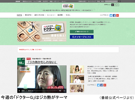 パソコンだけでなく、タブレット端末やスマートフォンを手放せなくなった現代人にとって目の疲れはとても気になる存在です。そこで、「たけしの健康エンターテインメント!みんなの家庭の医学」(5月17日19:00=テレビ朝日系)では、目を老けさせない新事実を紹介。また、「カンブリア宮殿」(5月19日22:00=テレビ東京系)では、深刻な眼科の病気の手術で世界トップレベルの腕を持つフリーランス眼科医に迫ります。 さらに、「総合診療医 ドクターG」(5月18日22:25=NHK)では、近年、ブラジルなど中南米の広い範囲で流行し、拡大の様相を見せているとして世界保健機関(WHO)が緊急事態を宣言した「ジカ熱」を取り上げます。症状はそう重くないものの、妊婦が感染すると小頭症の子供が生まれるというジカ熱の対処法や予防法が紹介される予定です。 三重県志摩市で開催されるサミット(先進国首脳会議)まで、あと10日と迫りました。そこで、「健康カプセル!ゲンキの時間」(5月22日7:00=TBS系)では三重県にスポットを当て、日本一肥満率が低く、がんによる死亡率も低いという"健康大国"三重県民の健康の秘密に迫ります。