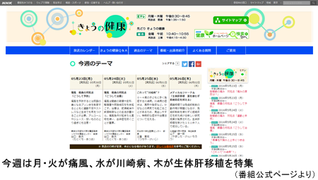 近年、技術の進歩で脳の仕組みが次々と分かってきました。そこで「主治医が見つかる診療所」(5月23日20:00=テレビ東京系)では、実際に脳科学の専門家が試したことがあり、認知症やうつ病の予防にもなるという"大人の脳育法"が紹介されます。また、男性と女性では考え方や行動に違いがあるとされていますが、「世界一受けたい授業」(5月28日19:00=日本テレビ系)では、人気脳科学者の中野信子先生が"男性脳"と"女性脳"の違いを解き明かします。 また、頭と言えば、頭痛で悩んでいる日本人はかなりの数に上るのではないでしょうか。そこで「健康カプセル!ゲンキの時間」(5月29日7:00=TBS系)では、頭痛に悩む方の症例を基に、頭痛を引き起こす原因やメカニズムから頭痛のタイプを分類し、それぞれの対処法を解説。さらに、片頭痛と心臓との意外な関係が明らかにされます。 このほか、5月23、24日の「きょうの健康」(20:30=NHK・Eテレ)は、中高年男性にとって身近な病気の痛風がテーマ。痛風は、慢性化すると痛みだけでなく関節が変形し、腎障害や尿路結石を引き起こす怖い病気でもあります。予防法や治療法について解説されるので、お酒をたしなむ方は必見ではないでしょうか。
