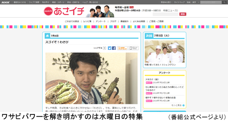 濃厚な味わいで「森のバター」と呼ばれるアボカド。さまざまな食材との相性が良く、近年は家庭の食卓にも登場するようになりましたが、栄養が豊富なのも特長の一つ。"世界一栄養価が高い料理"として、ギネス世界記録に認定されています。「華大の知りたい!サタデー」(7月9日21:00=BSフジ)では、そんなアボカドの健康効果に注目。メタボ改善や便秘予防、さらには夏バテ防止にも良いのだとか。アボカドを使った新しい料理も紹介されます。 また「あさイチ」(7月6日8:15=NHK)では、健康効果がたくさん詰まっている食材としてワサビを特集。アンチエージングにつながる抗酸化作用や血液サラサラ効果、さらにはがん予防まで期待できるそうですが、がん予防が期待できるのはある特定のワサビだけとか。そのワサビとはどんなものでしょうか? 急に立ち上がったとき、クラッとする、道を歩いていてフラッとする...そんな目まいの経験をお持ちの方も多いのでは? 目まいの原因は耳、脳、首とさまざまですが、その裏には命に関わる病気が隠れていることもあるようです。「チョイス@病気になったとき」(7月9日20:00=NHK・Eテレ)では、目まいのタイプの判別法と適切な治療法、再発予防のためにすべきことが、実例を踏まえて紹介されます。