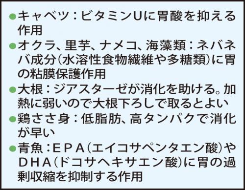 © Adobe Stock ※画像はイメージです 食べ過ぎや飲み過ぎで胃が弱ったときは、どうすればいいのだろうか。胃を回復させる食生活の工夫や対策などについて、江田クリニック(栃木市)の江田証院長に話を聞いた。 ▽胃をいたわる食事を 「特に正月明けは暴飲暴食で胃が荒れ、胃もたれなどの不快症状に悩む人が増えます。実は、休みで普段と異なる生活パターンとなるため、ストレスで自律神経が乱れることも不調の誘因になります」と江田院長。食生活では暴飲暴食を控え、消化の良い物を食べて胃をいたわることが第一。食材は、キャベツ、オクラ、里芋、ナメコ、海藻類、大根、鶏ささ身、青魚などで胃に良い効果が期待できる。 一時的な症状には市販の胃薬を活用するのも一案だ。「食後の胃もたれには、ジアスターゼ、リパーゼなどの消化酵素薬やショウキョウ(ショウガ)などの生薬成分を含む健胃薬。空腹時に症状が出る、胸焼けやむかつきを伴うなら、胃粘膜の荒れが関わるため、胃酸分泌を抑制するH2ブロッカーやM1ブロッカーがいいでしょう。症状が何日も続くなら、消化器内科を受診してください」 ▽胃の病気であることも 胃もたれが続く場合は、慢性胃炎や胃潰瘍、胃がんなどの病気も考えられるが、実際には、内視鏡検査をしても、特に目に見える病変が見つからないケースの方が圧倒的に多い。通常の検査で病変が見られないのに不快な症状が続く状態を「機能性ディスペプシア」と呼ぶ。 胃には本来、食べ物を一定時間ためて消化した後、十二指腸へ送り出す働きがある。ところが、何らかの理由で胃の上部がうまく膨らまなくなり、食べた物をためることができず、十分に消化される前に十二指腸に送り出されてしまう。同時に十二指腸から胃に逆流する運動も生じ、食べ物が長くとどまり過ぎる。 こうした胃の運動機能障害に加え、胃や十二指腸が知覚過敏になり、胃酸や胃の中の脂肪などの刺激に反応して症状を引き起こすとされている。 治療には、消化管の運動を促す薬や胃酸を抑制する薬、胃が膨らむ働きを改善する漢方薬、六君子湯(りっくんしとう)などが用いられる。「食事、運動、睡眠などの生活習慣改善やストレス対策も重要です。この時期は、ぬるめのお湯に長めに入浴することをお勧めしています」 (メディカルトリビューン=時事) ◇ 江田クリニックの所在地 〒329―4314栃木県栃木市岩舟町小野寺2575の7 電話0282(57)1234