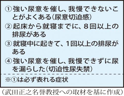 武田名誉教授は「頻尿や尿失禁があれば、一人で悩まずかかりつけ医に相談し、必要に応じて泌尿器科専門医の受診を勧めます」と助言している。