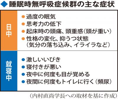 睡眠中にたびたび低呼吸や無呼吸が起きると、睡眠の質が低下して日中の眠気や生活習慣病の発症や悪化などを招く―。本人が自覚しないまま発症・進行する睡眠時無呼吸症候群(SAS)について、久留米大(福岡県久留米市)の内村直尚学長(神経精神医学)に、生活習慣病との関連などについて聞いた。