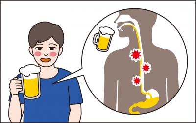 少量の飲酒で顔が赤くなる人は特に発症リスクが高いといわれる食道がん。その仕組みを動物実験で解明した京都大医学部付属病院腫瘍内科の武藤学教授に予防法などについて聞いた。 ▽毒性強い発がん物質 アルコールが肝臓で分解されてできるアセトアルデヒドは、毒性の強い発がん物質だ。アセトアルデヒドは通常、ALDH2という酵素によって無害な酢酸と水に分解される。また、アセトアルデヒドによって食道粘膜のDNAが傷ついても、がん抑制遺伝子であるTP53などがそれを修復する。 日本人を含むアジア人の3~4割は遺伝子変異で生まれつきALDH2の働きが弱く、飲酒するとアセトアルデヒドの影響で顔や体が紅潮したり、頭痛や吐き気がしたりする。ALDH2の機能が低い人は長期にわたる飲酒によって食道がんの発症リスクが高まるだけでなく、食道内に多発することが以前から知られていたが、メカニズムは不明だった。 武藤教授らは動物実験で、ALDH2の機能が低いと、飲酒とTP53の変異の組み合わせによって、将来がんになる可能性が高い前がん病変と食道がんが多発することを突き止めた。 人間でも「飲酒によって食道粘膜に将来がんになるリスクの高い前がん病変ができやすくなり、禁酒すれば前がん病変は改善し、食道がんの抑制につながると考えられます」と武藤教授は説明する。 ▽「飲酒の効用」に疑問 厚生労働省は「健康に配慮した飲酒に関するガイドライン」で、少しでも飲酒すると食道がんの発生リスクが高まるとのデータを示している。以前は、「酒は百薬の長」とされていたが、今では間違い。飲酒を習慣にしている人は食道がんに注意が必要だ。 ALDH2の機能が低い人の中には飲酒しても顔や体が赤くならない人もいて、無自覚のままアセトアルデヒドが大量に蓄積される可能性がある。武藤教授らは体内に産生されるアセトアルデヒドを呼気で簡便に測定できる機器を開発中で、食道がん高リスク者を健診などで見つけ出す手段として期待されている。 「日本人の食道がんの予後(病気の経過や見通し)はアジアの他の国と比べて良好で、その理由として内視鏡による早期診断・治療が進んでいる点が挙げられます。早期発見のために定期的に健診を受けることをお勧めします」と武藤教授は話している。(メディカルトリビューン=時事) ◇ ◇ 京都大医学部付属病院の所在地 〒606―8507 京都市左京区聖護院川原町54 電話075(751)3111(代)
