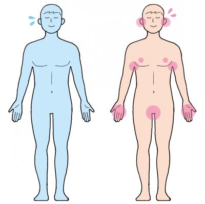 暑さの刺激で発汗し、比較的臭いが少ない「エクリン汗」は脇や額、さらには全身から出る。一方、緊張や不安、興奮など精神的なストレスを感じると出る「アポクリン汗」は、手のひらや脇など限られた部位で分泌する。脂分を含んでべとべとして、スパイスのクミンのような独特な臭いがする。
