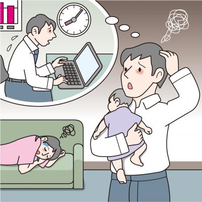 こうした中、近年は父親も産後うつを発症するケースが国内外で報告され、研究も行われている。日本で行われた調査では、発生頻度は女性と同等だった。父親の長時間労働や睡眠時間の短さなどがリスクになるという。
