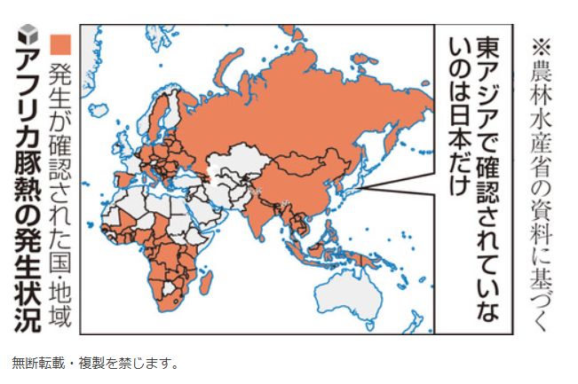 東アジアで未発生は日本のみ、「アフリカ豚熱」水際警戒を強化...最悪のシナリオは「国内の飼養豚4割減」〔読売新聞〕