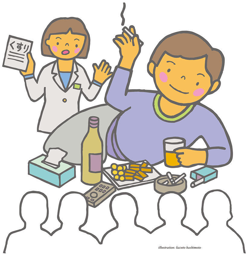 獨協医科大学越谷病院こころの診療科.井原 裕 ライフスタイル医学時代の薬剤師 「街角のサイエンティスト」といわれる薬剤師に、今、「生活習慣コンサルタント」としての役割が求められています。プライマリ・ケアの領域では、外来患者さんの6〜7割が生活習慣病です。生活習慣病であるということは、生活習慣を整えていれば防げたかもしれないし、生活習慣を整えれば今からでも改善が見込めるということでもあります。ここに専門知識を持った薬剤師がコンサルタントとして関与することの意義があります。 今日、先進国の主たる死因は、心疾患、がん、脳血管障害、閉塞性肺疾患、外傷、糖尿病などです。このうち外傷を除けば、いずれも生活習慣が一定の影響を及ぼしています。Mokdadら(2004)は、米国人の死因を分析、それらへの生活習慣の関与を推定しています。全死亡例に対する関与の程度は、上位から順に、たばこ(18.1%)、食生活の問題と運動不足(16.6%)、アルコール(3.5%)。以下、微生物(3.1%)、毒物(2.3%)、交通事故(1.8%)、銃(1.2%)、性行動(0.8%)、違法薬物(0.7%)と続きます。上位二者だけで34.7%ですので、死亡例の3分の1は、生活習慣の問題だといえます。 慢性疾患に対する薬物療法は、真の病因を治療してはいません。リスクファクターを治療しているだけです。薬物療法においては、血圧、脂質、HbA1c、血糖値などが治療の指標となっています。 しかし、これらはいずれも疾患そのものでもなければ、病因でもありません。疾患とは、冠動脈性心疾患、糖尿病、脳卒中、がんなどであり、その病因はたばこ、食事、不活発、肥満、アルコール等です。疾患を予防ないし治療するために本当に必要なことは、血圧を下げることでも、コレステロール値を下げることでも、HbA1cを下げることでもなく、むしろ、たばこを控え、バランスの良い食事を取り、適度の運動をして、体重を落とすことです。 このような現状にあって、生活習慣医学(Lifestyle Medicine)の必要性が強調されています。そこでは、患者さん本人が主役です。一人ひとりの患者が、生活習慣改善に主体的に取り組まなければなりません。生活習慣の是正が主であり、薬物療法は従。その典型が糖尿病です。インスリンだって、一方でチョコレートを食べていては、効果を発揮できません。 今後、生活習慣への介入には、健康に関わる多職種が関与するべきでしょう。医師だけでなく、看護師、保健師、栄養士、理学療法士、作業療法士、そして、当然、薬剤師。その場合の立ち位置は、コンサルタントの役割であって、治療者の役割ではありません。経営コンサルティングに例えれば、身体の経営者は患者さん本人であり、専門家はそのコンサルタント役です。「街角のサイエンティスト」にも、「ライフスタイル・コンサルタント」としての役割が期待されているといえるでしょう。