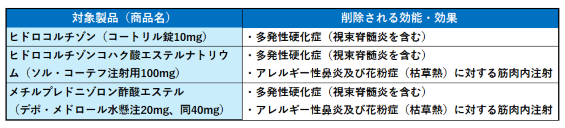 日本神経学会は昨日(11月10日)、ファイザーが製造販売するヒドロコルチゾン(商品名コートリル錠10mg)、ヒドロコルチゾンコハク酸エステルナトリウム(ソル・コーテフ注射用100mg)、メチルプレドニゾロン酢酸エステル(デポ・メドロール水懸注20mg、同40mg)について、効能・効果の一部を削除することについて厚生労働省、関連学会の了承を取得し、電子化された添付文書(電子添文)を改訂したと発表した。(関連記事「ソル・コーテフの最新供給状況を案内」、「デポ・メドロールが限定出荷に」) 今回、削除の対象となる製品と効能・効果は以下の通り。 同社は削除の理由として、①多発性硬化症:米・ファイザー社において有効性と安全性について文献レビューおよびガイドラインの確認などを行った結果、多発性硬化症の急性増悪治療における使用を支持するデータは特定されなかった、②アレルギー性鼻炎および花粉症(枯草熱):米・ファイザー社において有効性と安全性について文献レビューおよびガイドラインの確認などを行った結果、「アレルギー性鼻炎」および「花粉症(枯草熱)」の筋肉内投与による使用については、現行の治療法と同等以上であることを支持するデータが不足しており、ガイドラインでは非経口コルチコステロイドは推奨されていないことが確認された。また、注射部位反応や過敏症などの全身性反応の発現リスクが、アレルギー性鼻炎に対する非経口コルチコステロイド投与のベネフィットを上回る可能性が示唆された-を挙げている。
