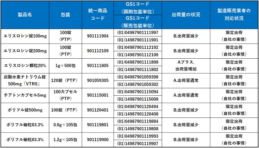 エリスロシン、ポリフルなどの供給再開