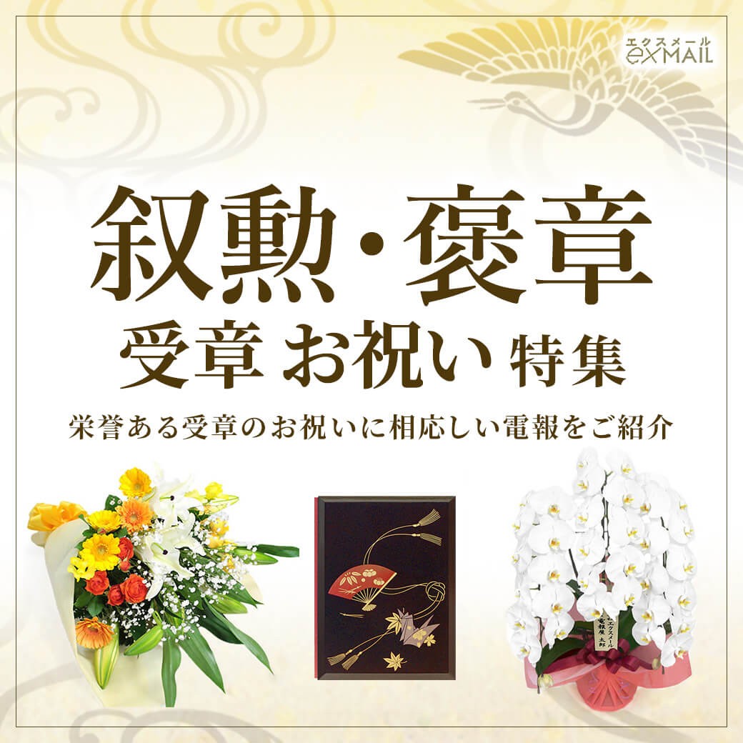 叙勲・褒章 受章祝いにおすすめのギフト商品はこちら(電報屋のエクスメール本店) : https://www.exmail.co.jp/special/jokun/