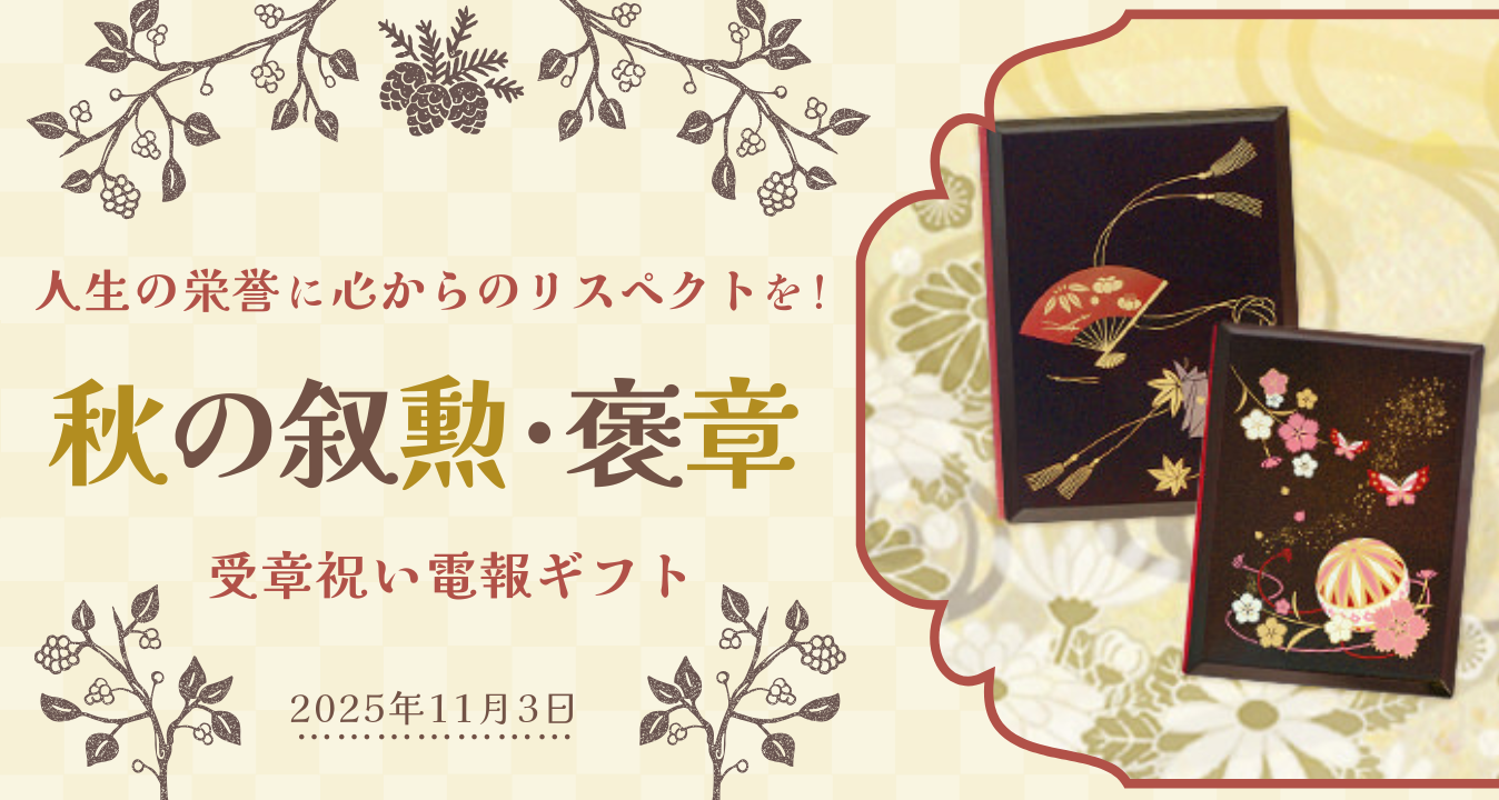 11月3日(文化の日)に行われる「秋の叙勲・褒章」。 長年の努力や社会への貢献が形となって讃えられる、人生における特別な栄誉です。 祖父母や恩師、上司など、親しくも尊敬する相手の受章を知ったとき、「おめでとう」とともに、日々の歩みや功績に敬意と感謝の気持ちを伝えたい──そう考える方は少なくありません。 株式会社シー・モア(所在地:大阪市北区大淀中、代表取締役:佐合 曜)が運営するインターネット電報サービス「電報屋のエクスメール」では、受章祝いの祝電受付を順次開始。 電報とギフトを組み合わせることで、形式を大切にしながらも、心のこもったメッセージを手元に届けられる“親しい人への特別なお祝いのかたち”を提案しています。