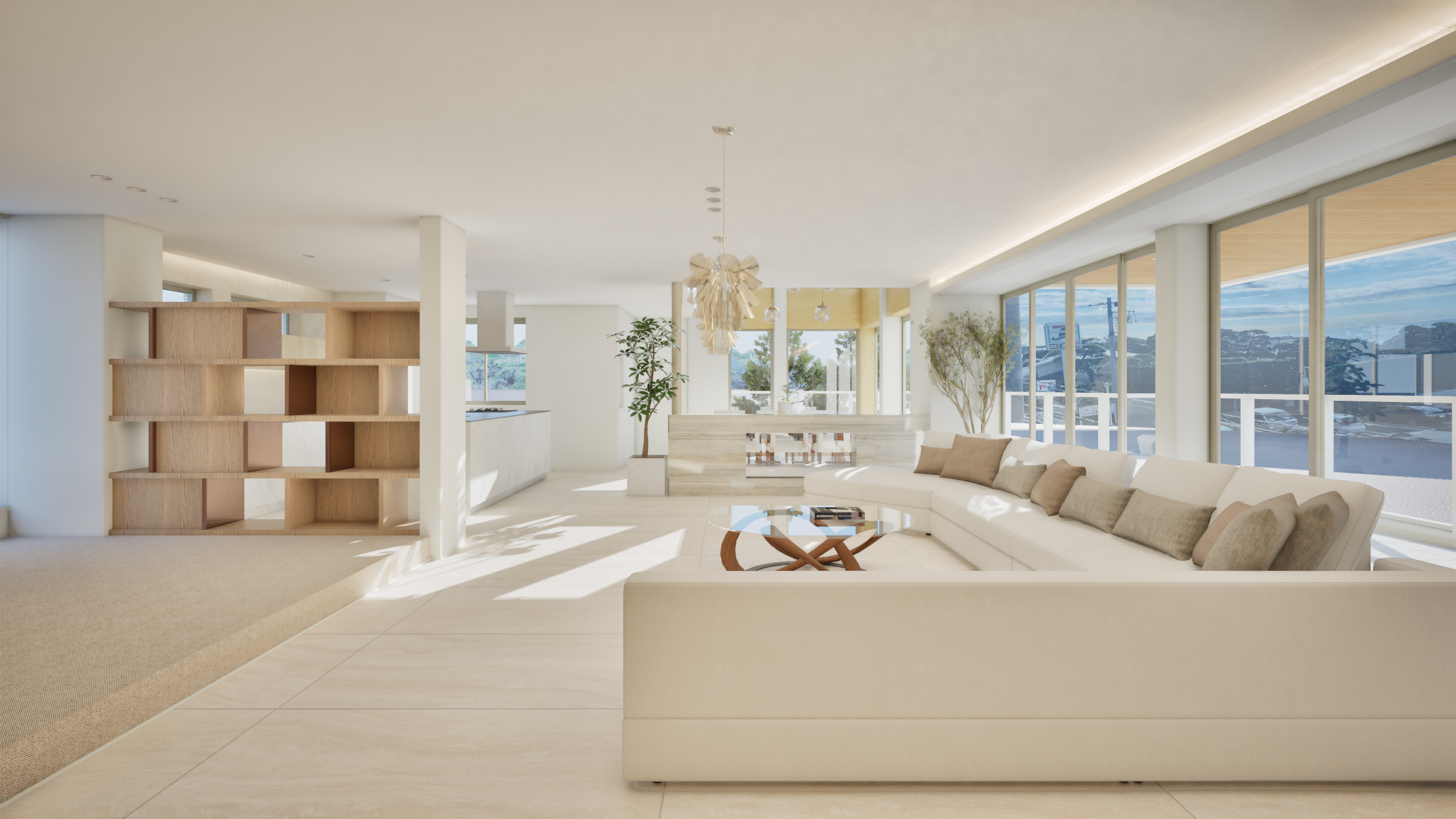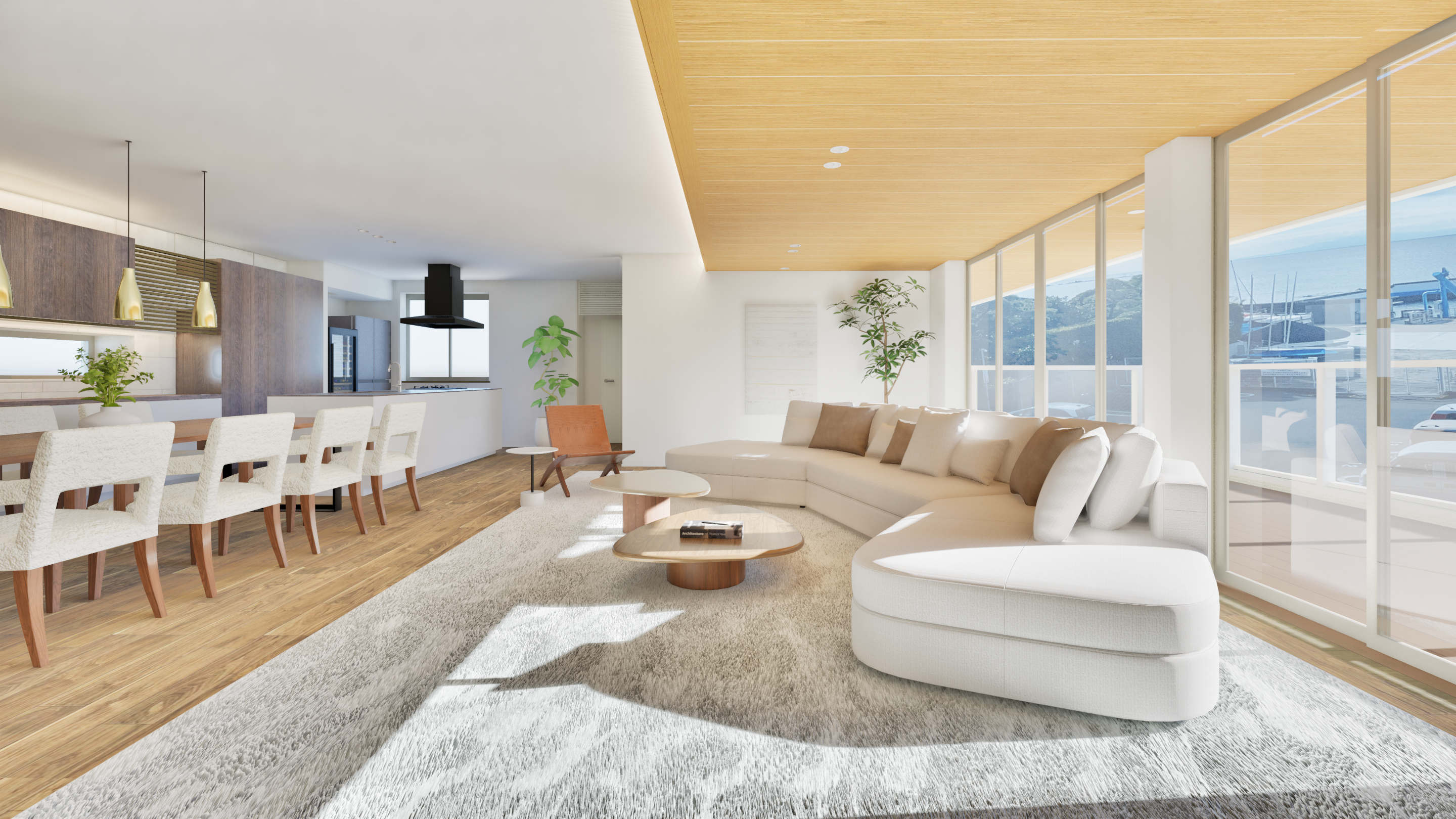 オーシャンビューのリビングダイニングキッチンと主寝室、洋室などを備えたオーナーフロアは、海と空を自分のものにできるプライベートエリアです。自分らしく心地よく、特別な時間を過ごすことができます。
