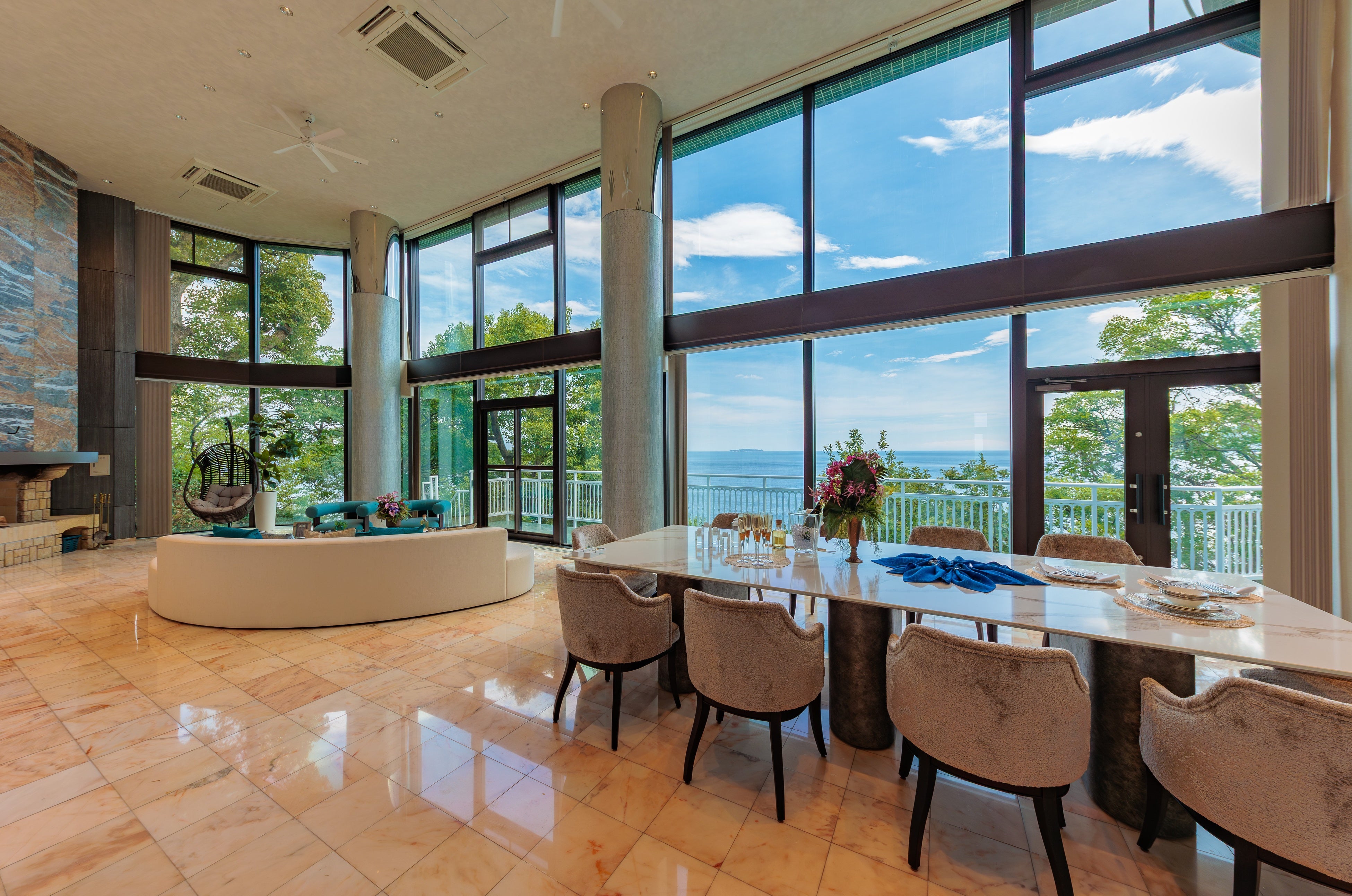 吹き抜けのある明るいリビングダイニングは90平方メートル を確保し、圧倒的な開放感を演出。また、シャワー室と洗面所、トイレを併設したゲストルームを2つ設け、どなたでもくつろげる空間を用意しました。リビングダイニングとゲストルームはオーシャンビューを享受でき、五感を満たす至福のひとときを満喫いただけます。