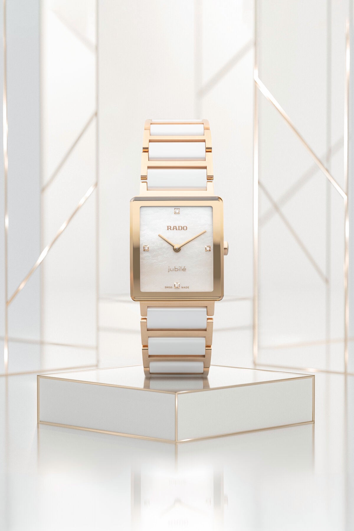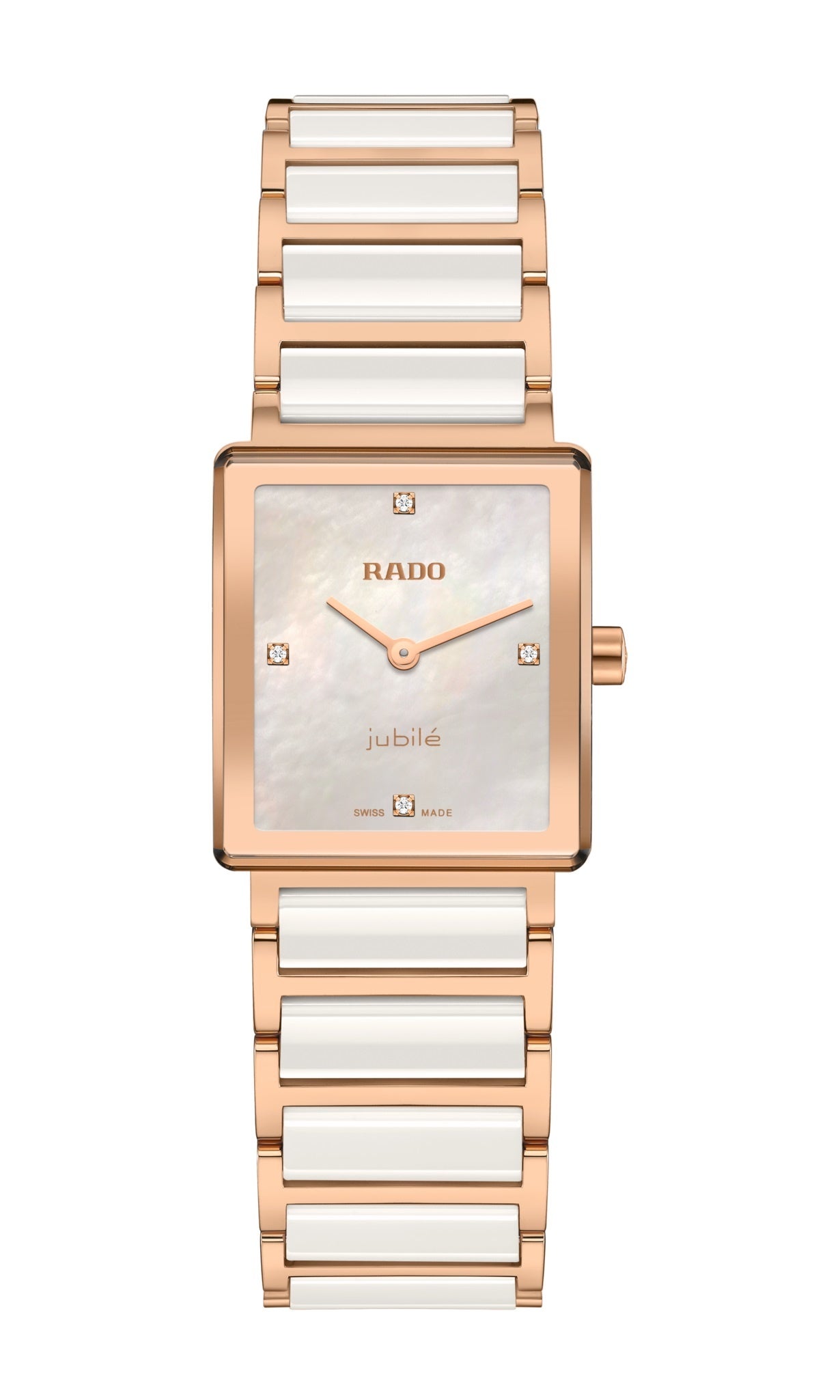 ホワイト マザーオブパール、ローズゴールドプリントのRadoおよびJubileのロゴ